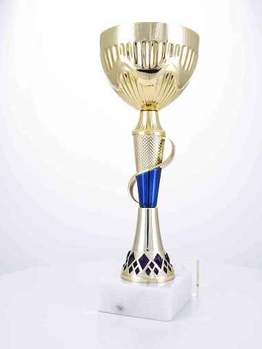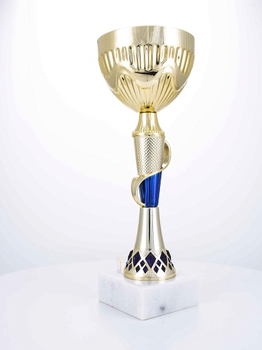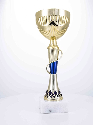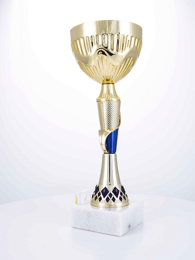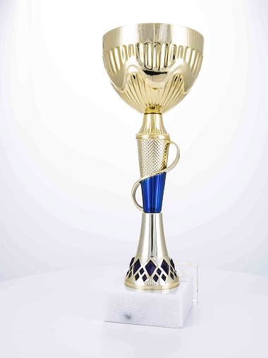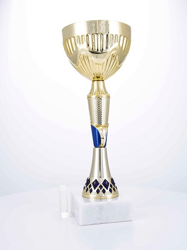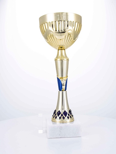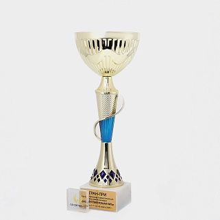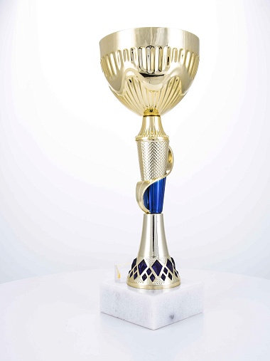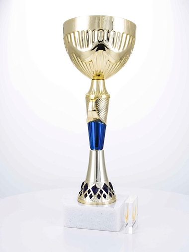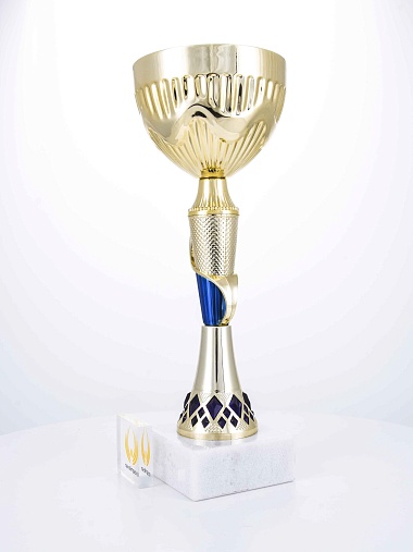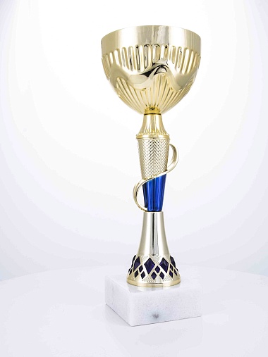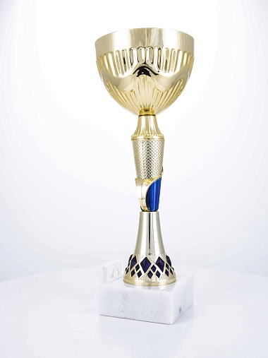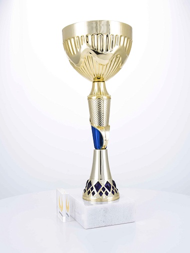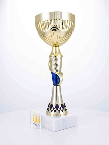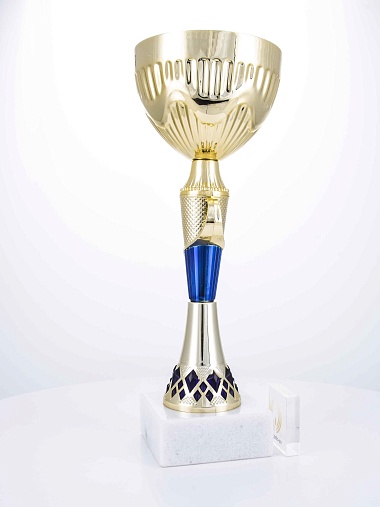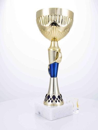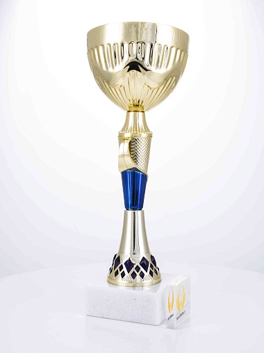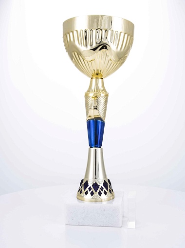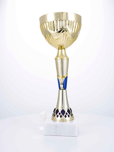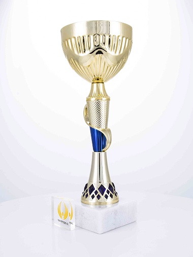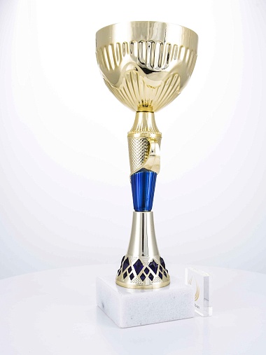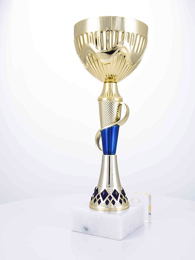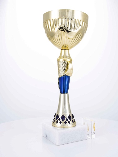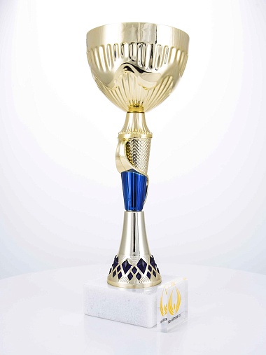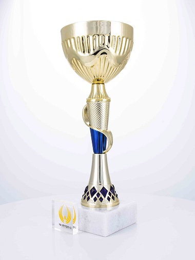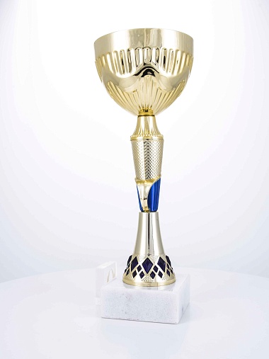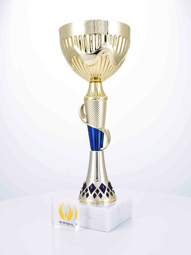 Кубок с металлической чашей на основании из мрамора. Кубок BC-1821 можно укомплектовать крышкой с фигуркой. Тематические фигурки отражают вид спорта или характер события, на котором происходит вручение. Установив на крышку эмблемоноситель, вы можете получить дополнительное место для размещения текста или логотипа.