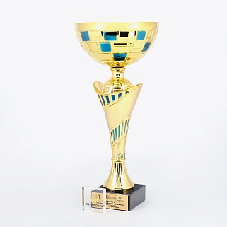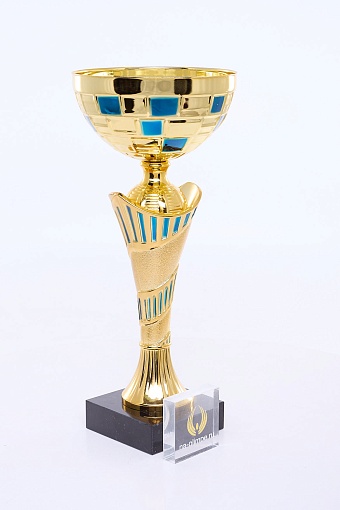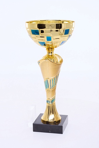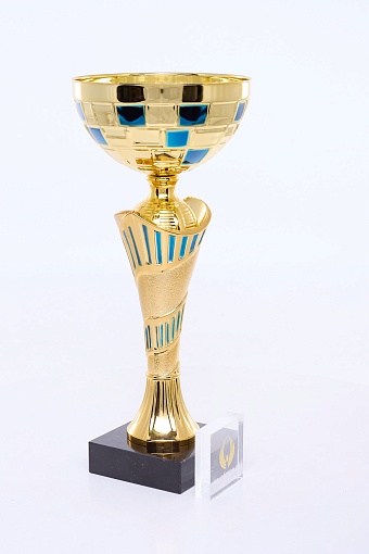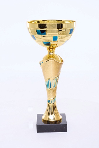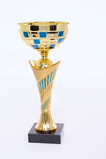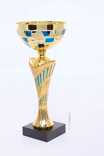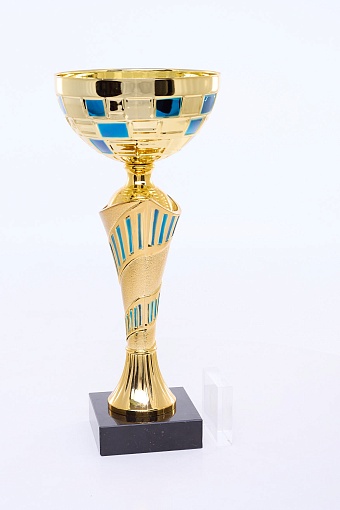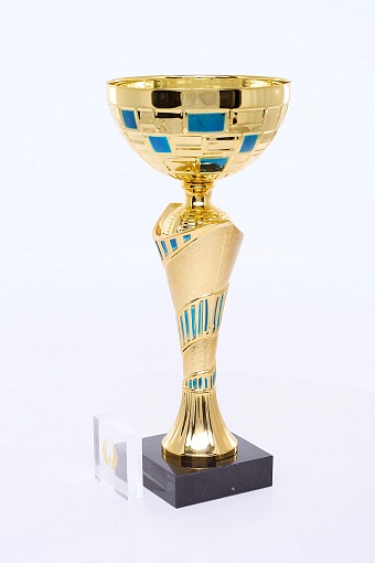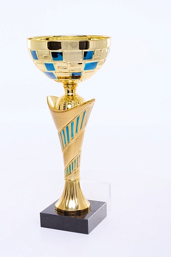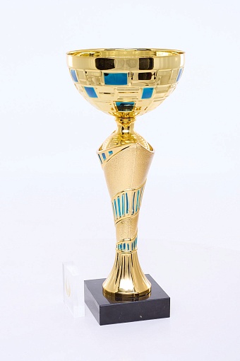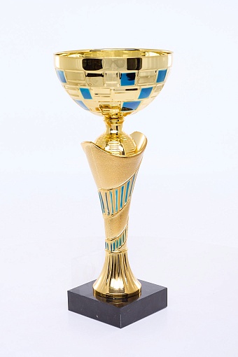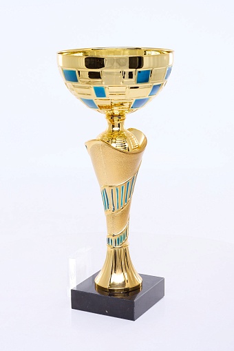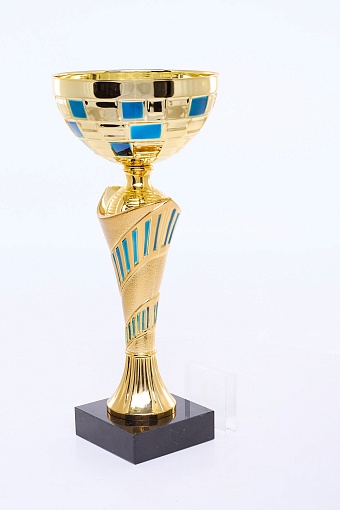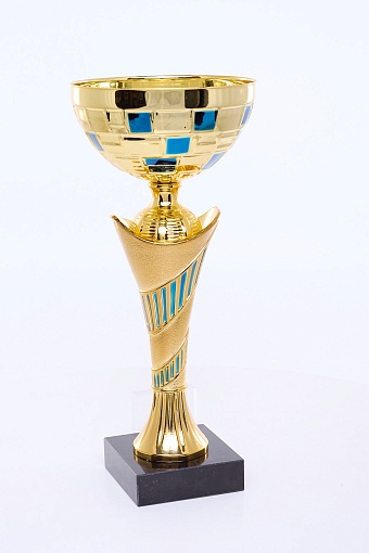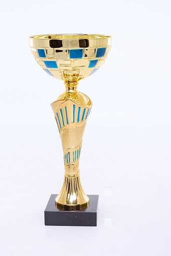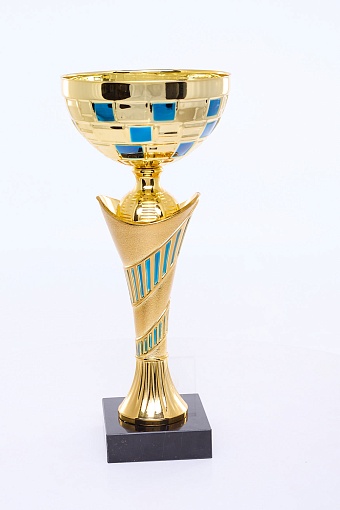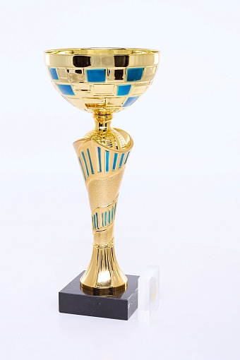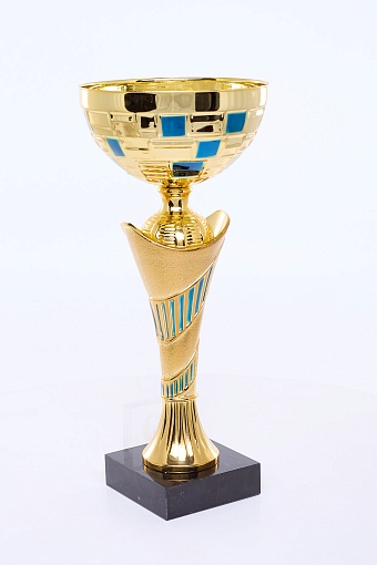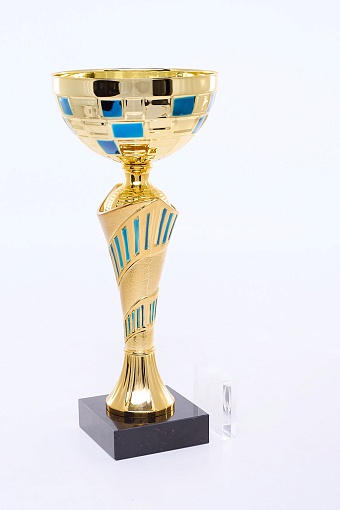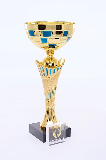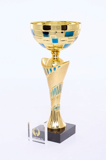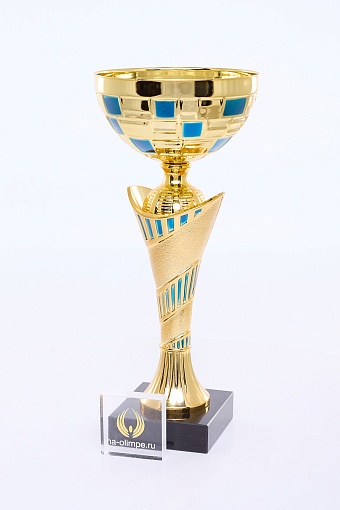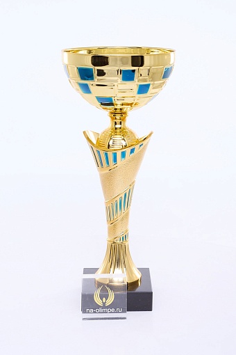 Кубок на основании из мрамора. Представляем вам кубок с синими элементами на ножке. Металлическая чаша блестяще сверкает, отражая свет, а яркие синие элементы добавляют динамики и свежести в общее оформление. Этот кубок не только отмечает успехи, но и служит постоянным напоминанием о том, что тяжелая работа и упорство непременно вознаграждаются. Кубок можно укомплектовать крышкой с фигуркой. Тематические фигурки отражают вид спорта или характер события, на котором происходит вручение. Мраморное основание кубка можно укомплектовать металлической, пластиковой или заливной табличкой с вашим текстом или логотипом. Примеры исполнения нанесения можно посмотреть на фото примеров или в нашей Галерее. Заказ от 1шт. Доставка в любую точку РФ.