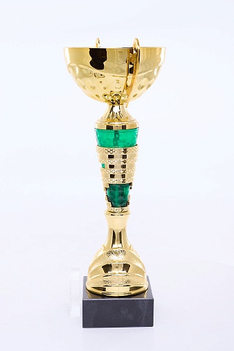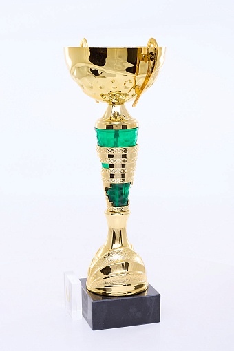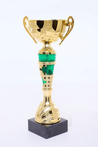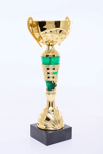 Кубок на основании из мрамора. Представляем вам кубок с элементами зелёного на ножке. Металлическая чаша нашего кубка привлекает внимание своим блеском и образом силы. Он идеально подходит для награждения победителей различных соревнований, конкурсов и корпоративных событий. Зеленое пластиковое основание с мрамором придаёт кубку стильный и современный вид. Что делает этот кубок по-настоящему уникальным. Кубок можно укомплектовать крышкой с фигуркой. Тематические фигурки отражают вид спорта или характер события, на котором происходит вручение. Мраморное основание кубка можно укомплектовать металлической, пластиковой или заливной табличкой с вашим текстом или логотипом. Примеры исполнения нанесения можно посмотреть на фото примеров или в нашей Галерее. Заказ от 1шт. Доставка в любую точку РФ.