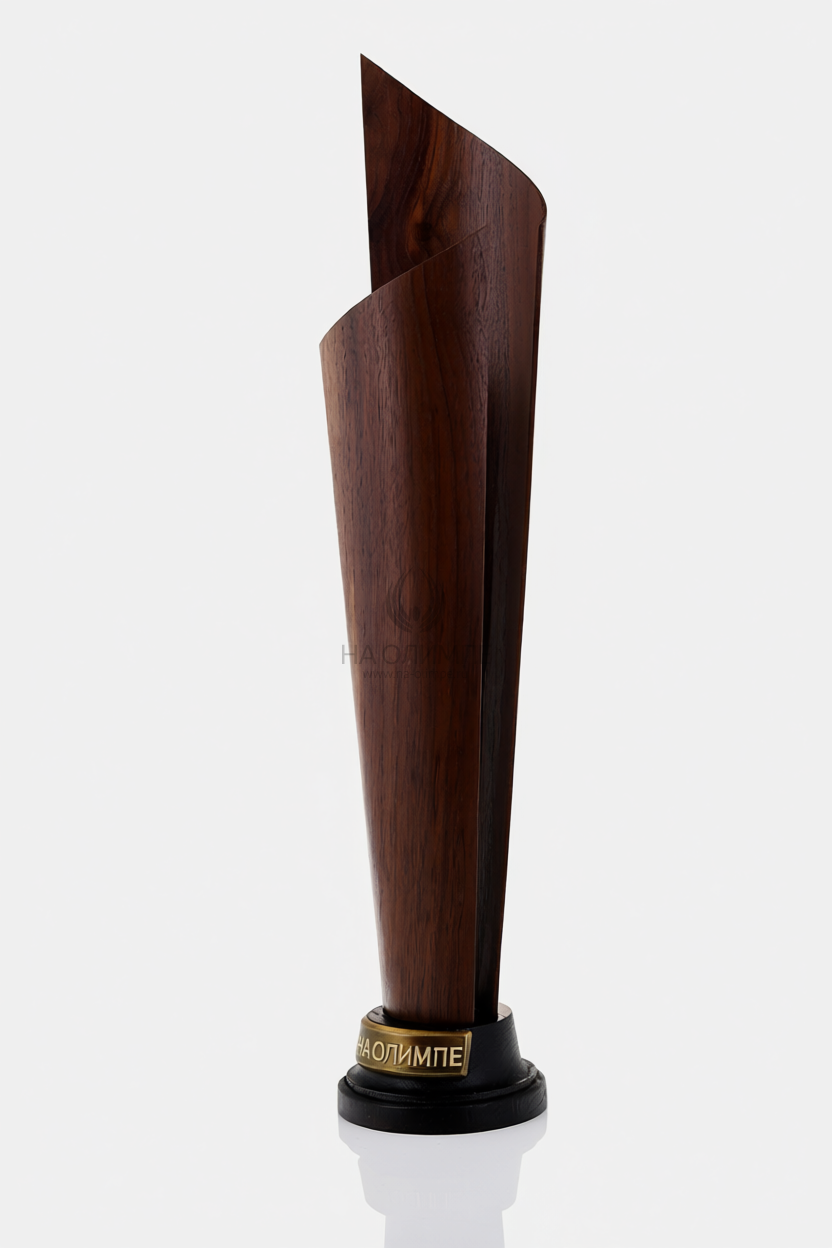 Деревянная награда премиум класса, изготавливается от 3 шт. под заказ. Срок изготовления 10 рабочих дней (до 45шт). Кубок изготовлен из натурального дерева. Награда выполнена из массива американского ореха и ясеня. Табличка 18х75мм. выполнена из латуни 2,5мм с фасками, зеркально отполирована. Гравировка на шильде глубиной до 1мм.(зависит от количества текста). Табличка с гравировкой входит в стоимость награды. Услуги дизайнера оплачиваются отдельно.