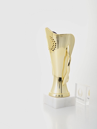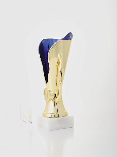 Кубок на основании из мрамора. Представляем вам наш великолепный пластиковый золотой кубок c синей чашей внутри на мраморном основании — стильный и доступный вариант, который станет настоящим украшением любого награждения. Этот кубок выполнен из прочного и легкого пластика, который надежно скреплен с элегантным мраморным основанием. Кубок обладает элегантными линиями и изящными формами, которые идеально подходят как для спортивных соревнований, так и для творческих конкурсов. Он станет ярким акцентом любого мероприятия. Мраморное основание кубка можно укомплектовать металлической, пластиковой или заливной табличкой с вашим текстом или логотипом. Кроме того на кубке есть специальное место под вкладыш - его можно дополнить стандартным плоским вкладышем или заказной эмблемой с вашим текстом или логотипом. Примеры исполнения нанесения можно посмотреть на фото примеров или в нашей Галерее. Заказ от 1шт. Доставка в любую точку РФ.