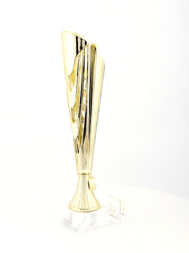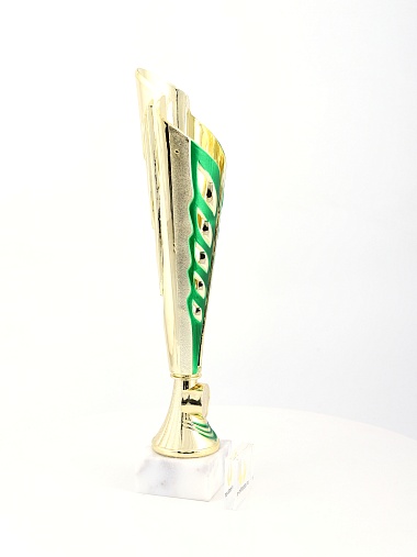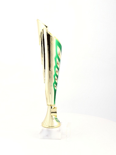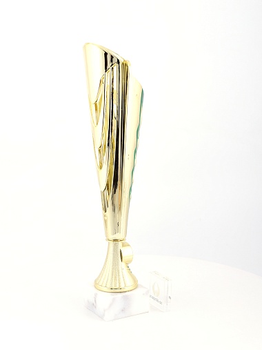 Кубок на основании из мрамора. Представляем вам невероятный кубок на мраморном основании. Его великолепное золотое покрытие символизирует достижение наивысших вершин, в то время как утонченные синие элементы символизируют победу и амбиции. Мраморное основание подчеркивает стабильность и прочность этого трофея, делая его неотъемлемой частью любого торжества. Наш прекрасно подходит для спортивных турниров, корпоративных праздников, юбилеев и других значимых событий. Мраморное основание кубка можно укомплектовать металлической, пластиковой или заливной табличкой с вашим текстом или логотипом. Примеры исполнения нанесения можно посмотреть на фото примеров или в нашей Галерее. Заказ от 1шт. Доставка в любую точку РФ.