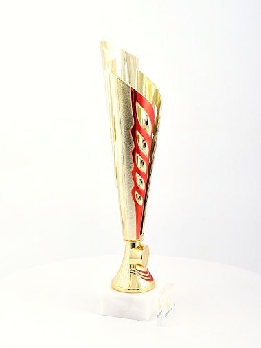 Кубок на основании из мрамора. Представляем вам невероятный кубок на мраморном основании. Его великолепное красное покрытие символизирует достижение наивысших вершин, в то время как утонченные синие элементы символизируют победу и амбиции. Мраморное основание подчеркивает стабильность и прочность этого трофея, делая его неотъемлемой частью любого торжества. Наш прекрасно подходит для спортивных турниров, корпоративных праздников, юбилеев и других значимых событий. Мраморное основание кубка можно укомплектовать металлической, пластиковой или заливной табличкой с вашим текстом или логотипом. Примеры исполнения нанесения можно посмотреть на фото примеров или в нашей Галерее. Заказ от 1шт. Доставка в любую точку РФ.