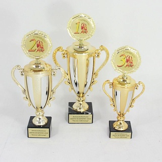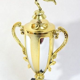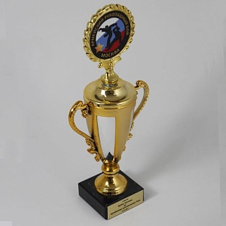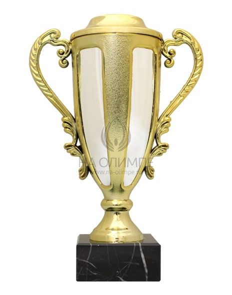 Кубок пластиковый на основании из мрамора. В крышке есть отверстие для крепления фигурки.