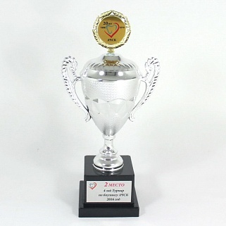 Кубок пластиковый. В крышке предусмотрено отверстие для крепления пластиковой фигурки.