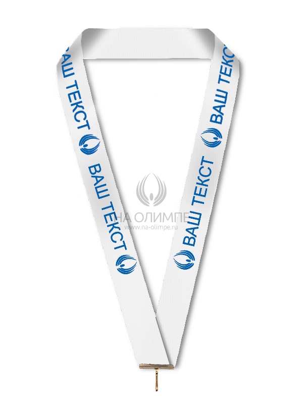 Лента сатин белая с голубым нанесением, цвет декора голубой