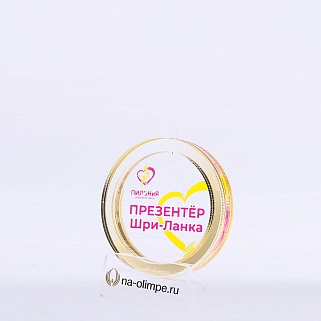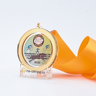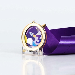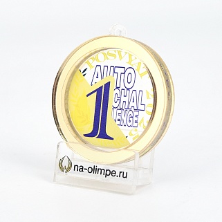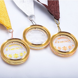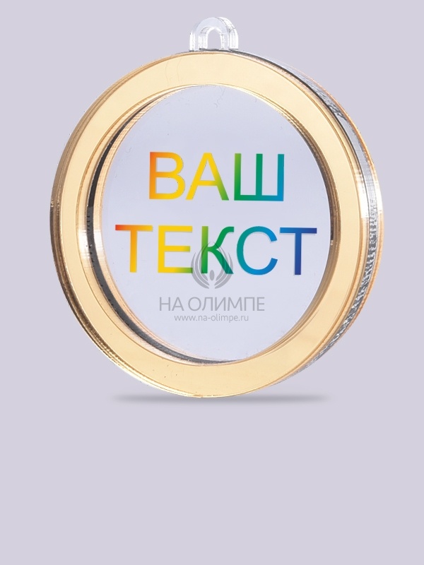 Трёхслойная медаль из акрила с цветным нанесением текста. Стоимость указана за нанесение на одной стороне. Возможность нанесения на дополнительной стороне и стоимость этих работ можно уточнить у менеджеров.