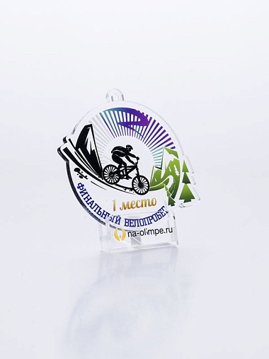 Медаль из акрила 102 Велоспорт с цветным нанесением, цвет прозрачный