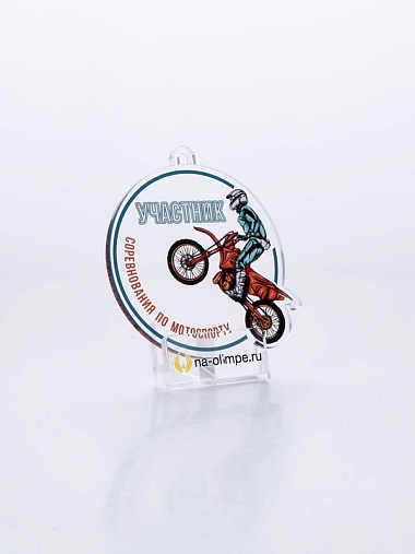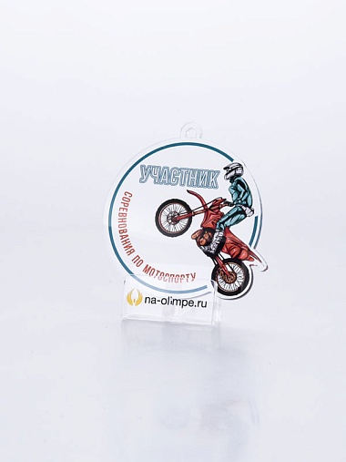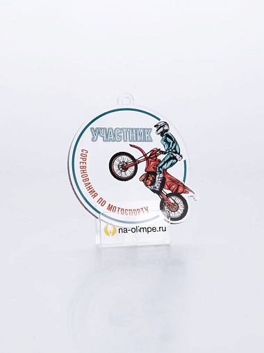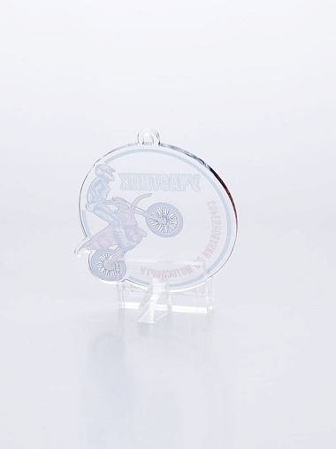Медаль из акрила 106 Мотоспорт с цветным нанесением, цвет прозрачный