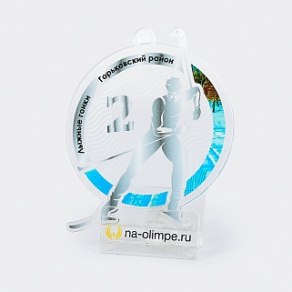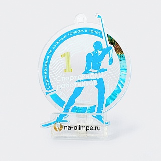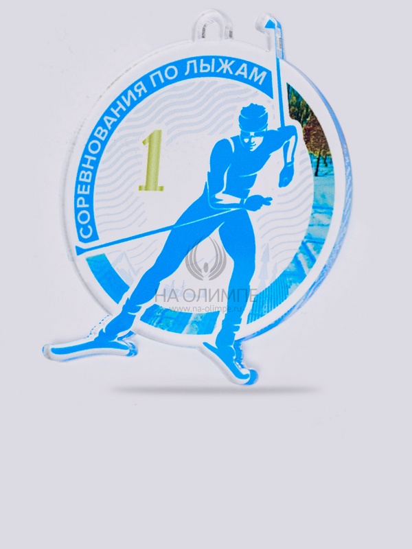 Медаль из акрила 108 Лыжи с цветным нанесением, цвет прозрачный