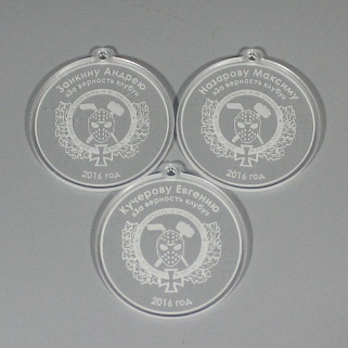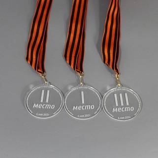 Медаль из акрила с гравировкой текста и/или логотипа по Вашему желанию.