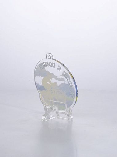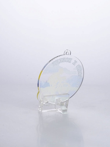 Медаль из прозрачного акрила с вашим текстом толщиной 3 мм.
