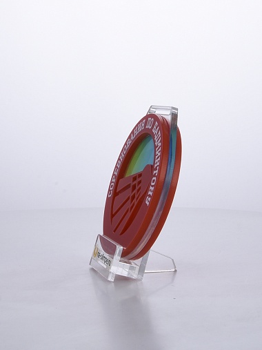 Трехслойная медаль из акрила диаметром 70 мм.