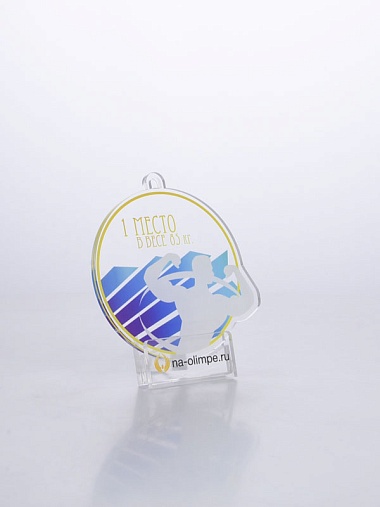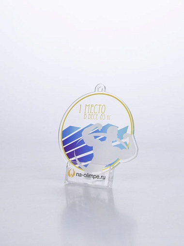 Медаль из прозрачного акрила с вашим текстом толщиной 3 мм.