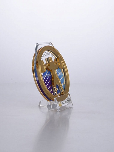 Трехслойная медаль из акрила диаметром 70 мм.