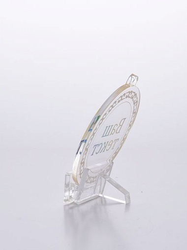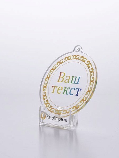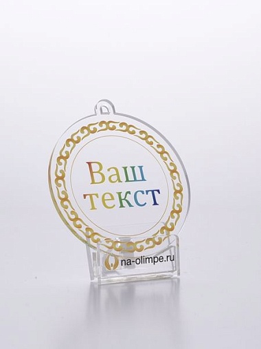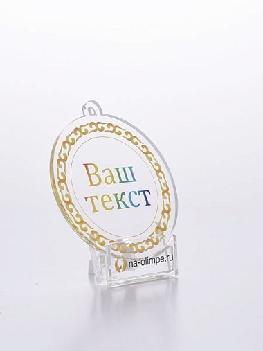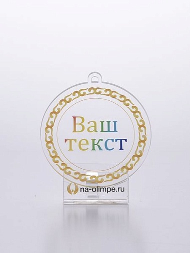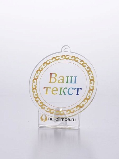 Медаль из акрила с цветным нанесением текста и/или логотипа по Вашему желанию.