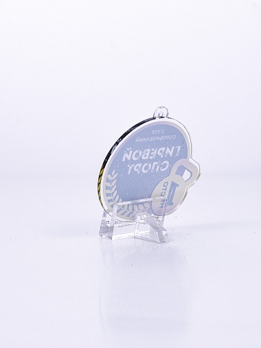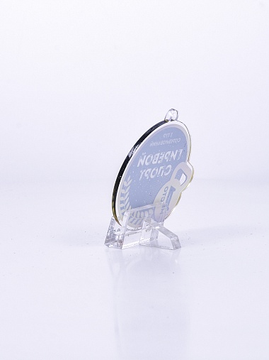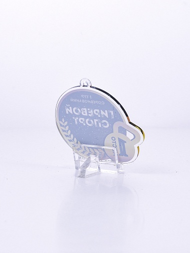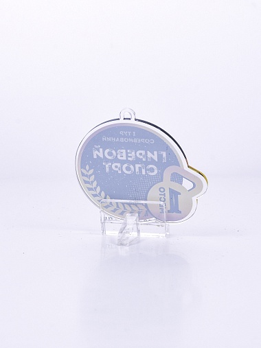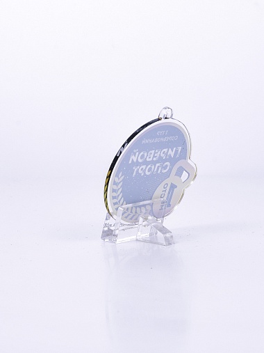 Медаль из прозрачного акрила с вашим текстом толщиной 3 мм.