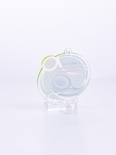 Медаль из прозрачного акрила с вашим текстом толщиной 3 мм.