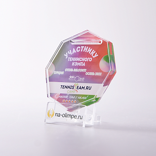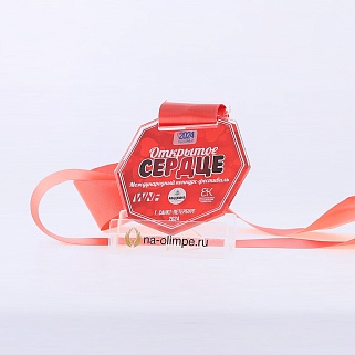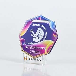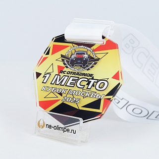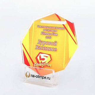 Медаль из акрила толщиной 3мм с цветным нанесением текста по Вашему желанию.