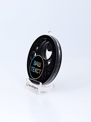 Медаль из черного и прозрачного акрила толщиной 9мм. с вашим текстом.