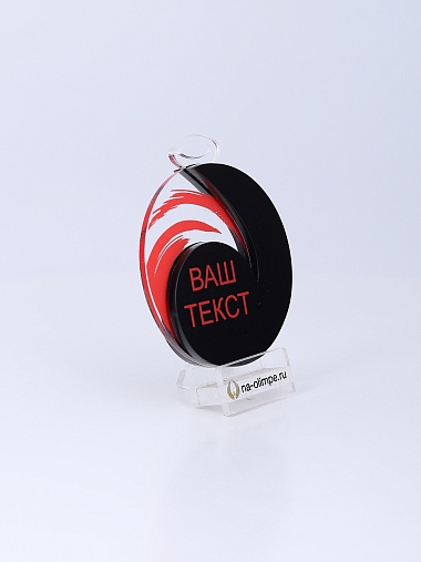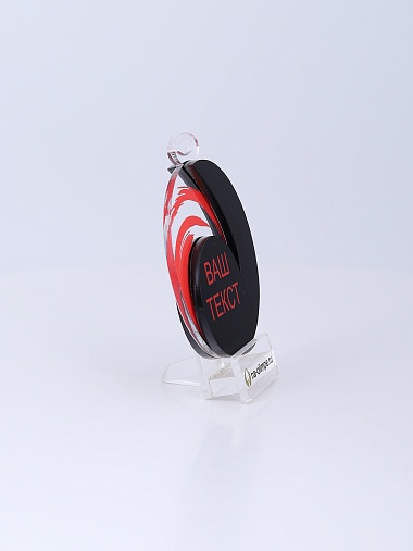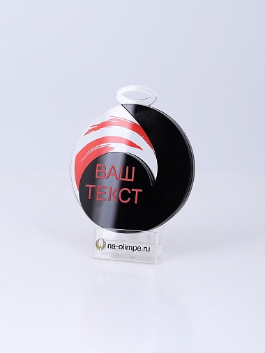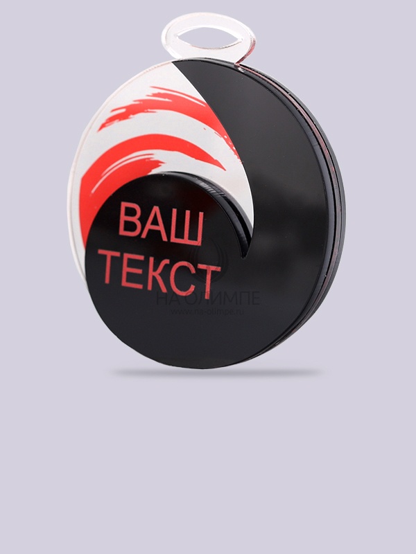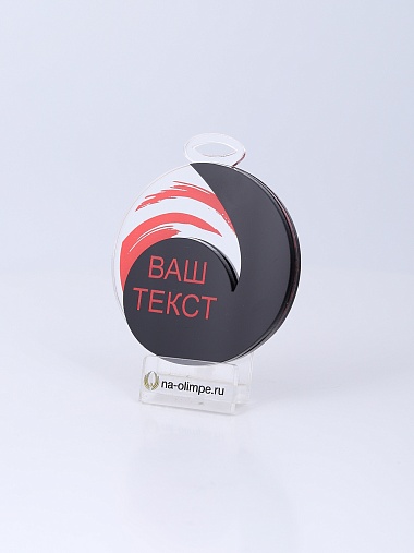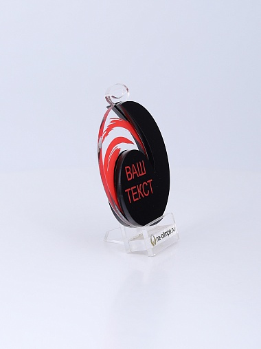 Трехслойная медаль из черного и прозрачного акрила с полноцветным нанесением.