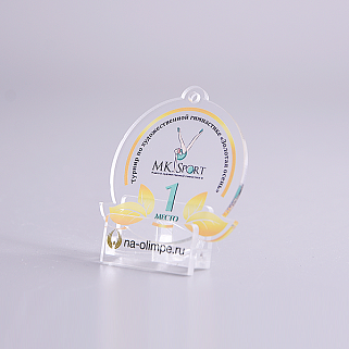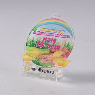 Медаль из акрила с цветным нанесением текста и/или логотипа по Вашему желанию.