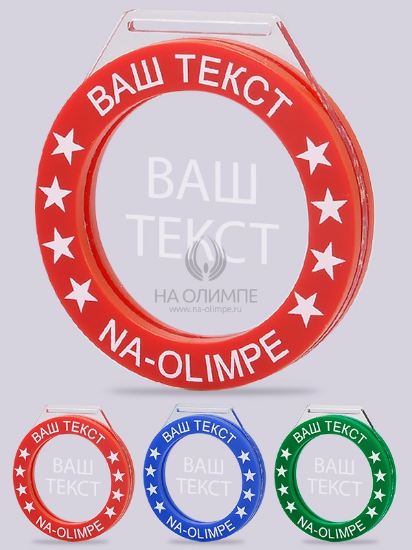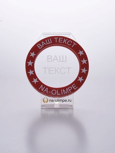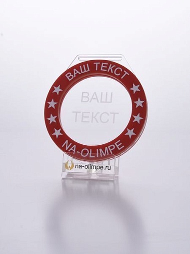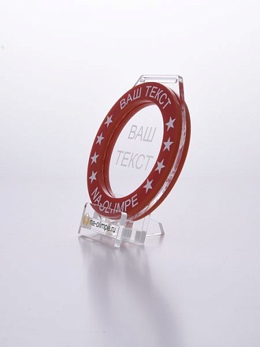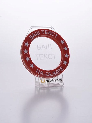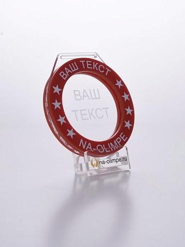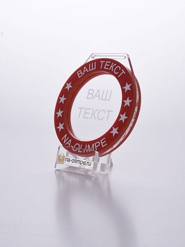 Медаль из акрила с гравировкой по центру и полноцветной печатью по кругу. Нанесение текста и логотипа уже включены в стоимость.
