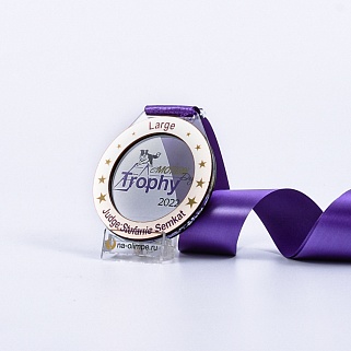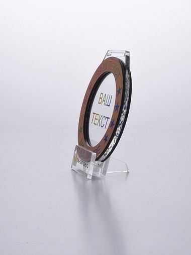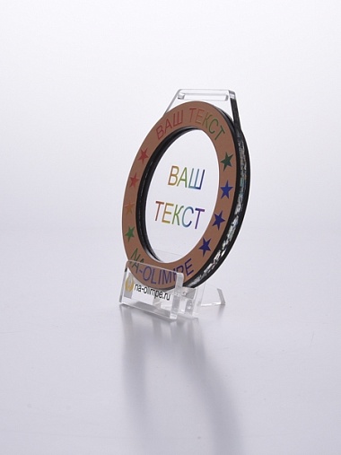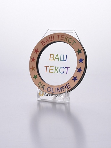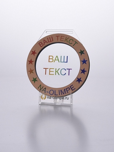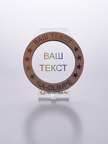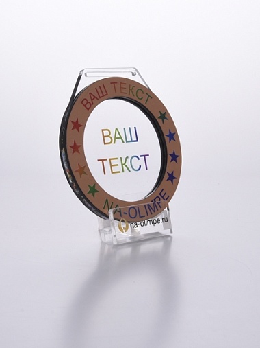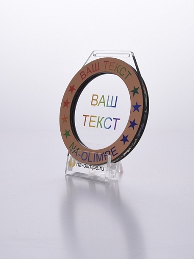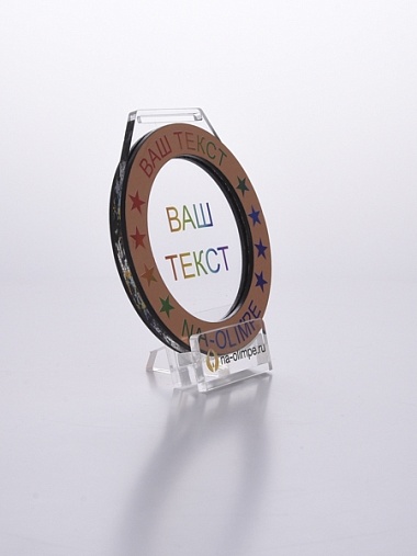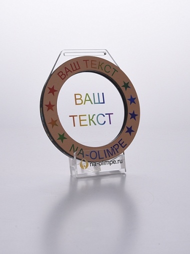 Медаль из акрила и бронзового пластика с полноцветной печатью в центре и по кругу. Нанесение текста и логотипа уже включены в стоимость.