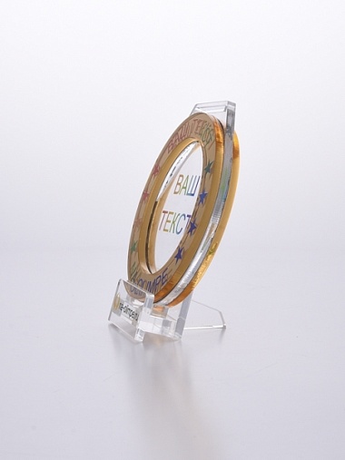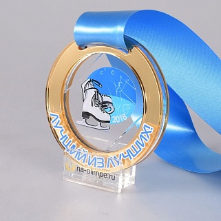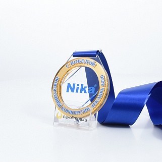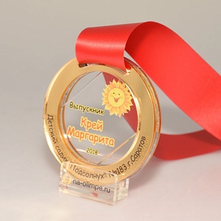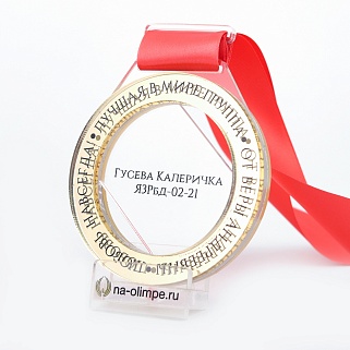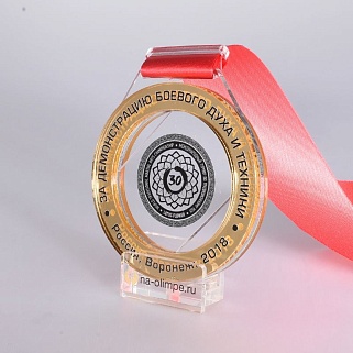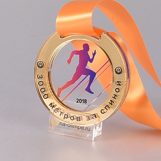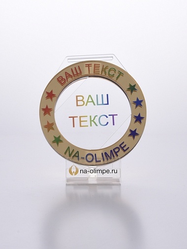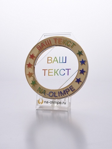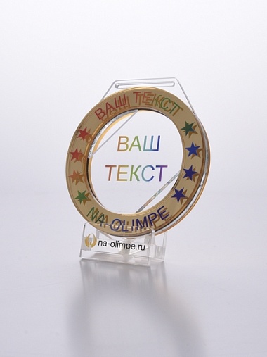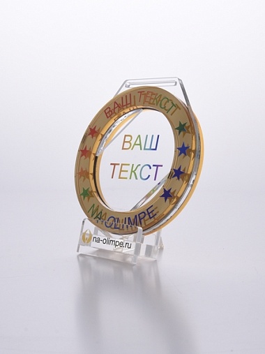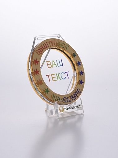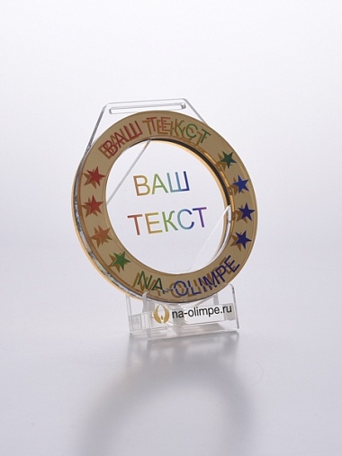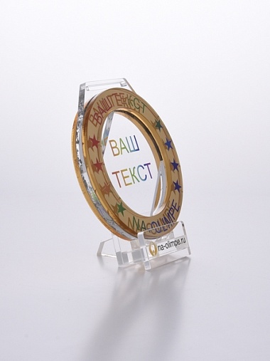 Медаль из акрила с полноцветной печатью по центру и по кругу. Нанесение текста и логотипа уже включены в стоимость.