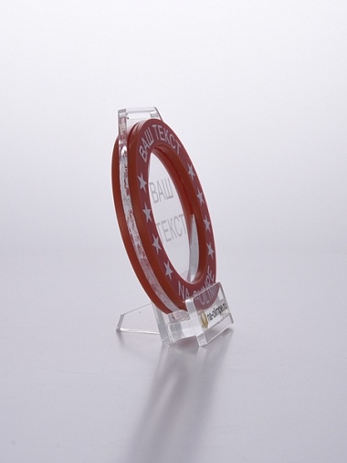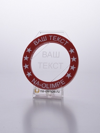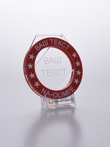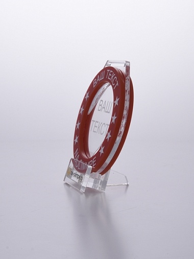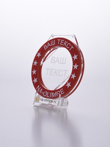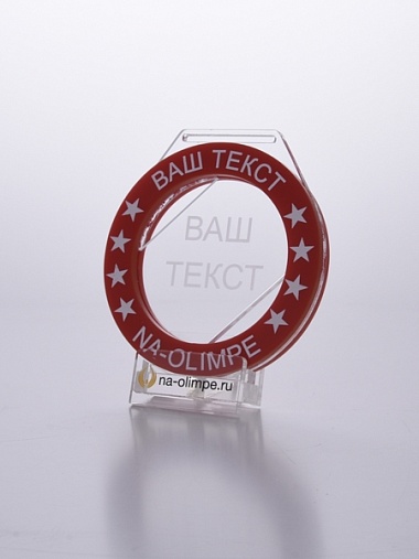 Трёхслойная медаль из акрила с гравировкой по центру индивидуальным полноцветным нанесением по кругу медали.