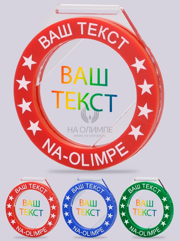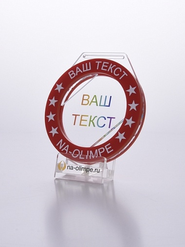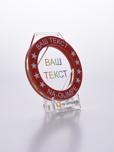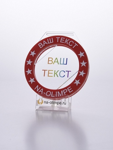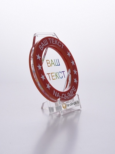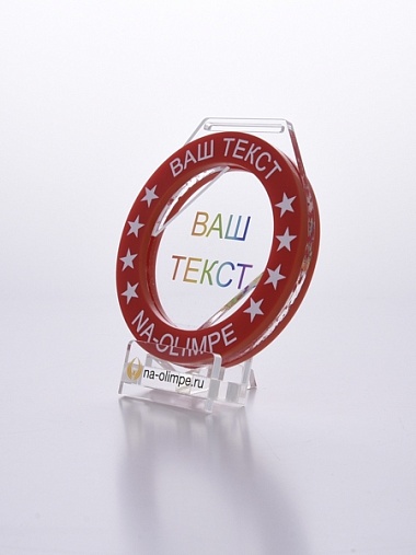 Трёхслойная медаль из прозрачного и цветного акрила с персональным нанесением любого цвета.