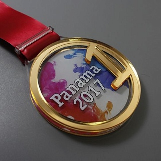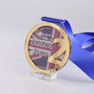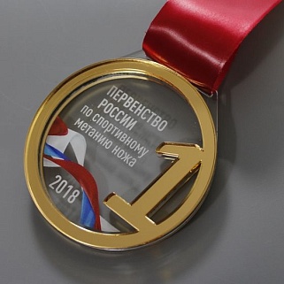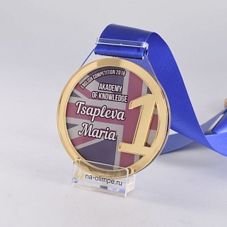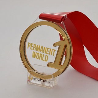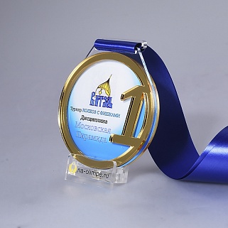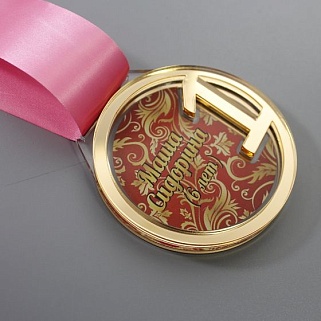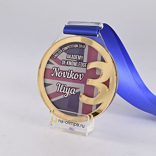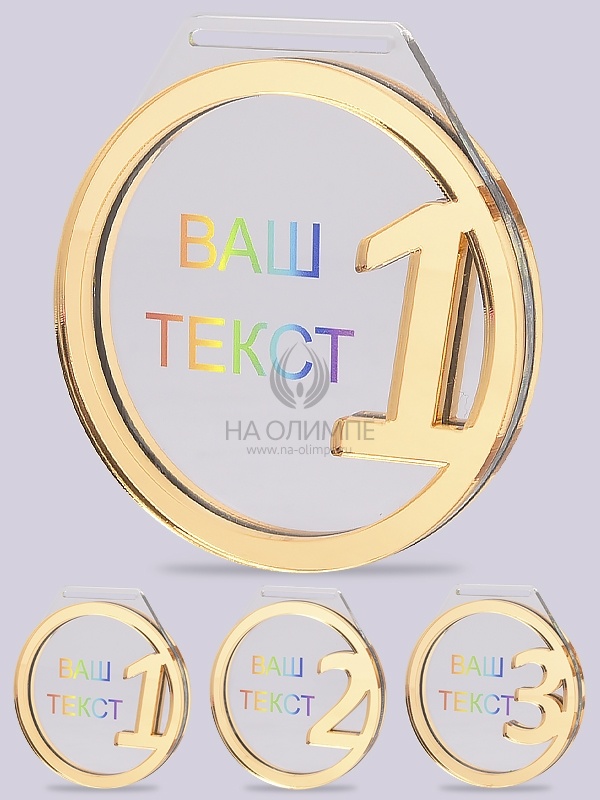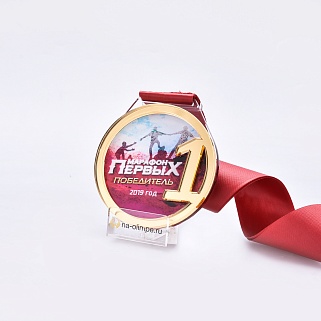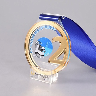 Медаль из акрила с полноцветной печатью. Нанесение текста и логотипа уже включены в стоимость.
