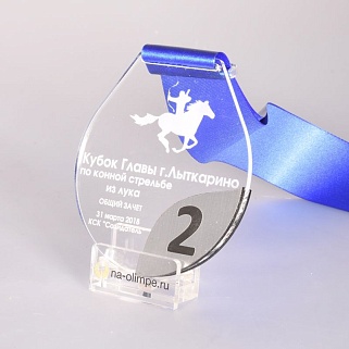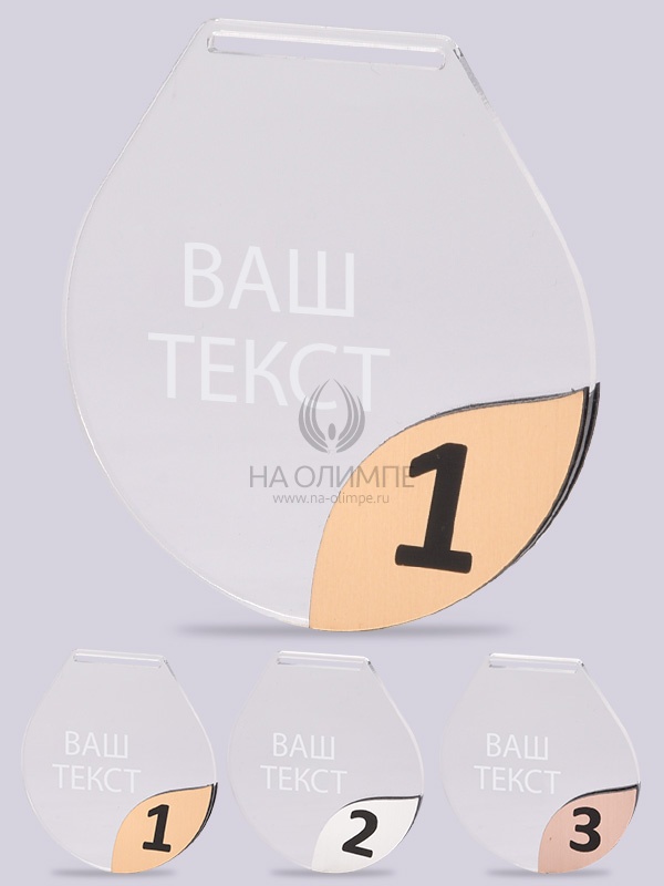Медаль из акрила и пластика с гравировкой. Нанесение текста и логотипа уже включены в стоимость.