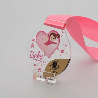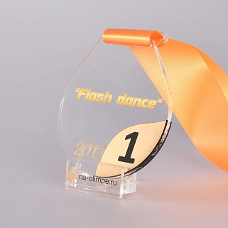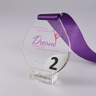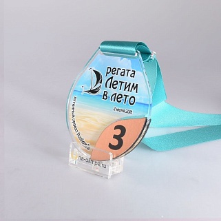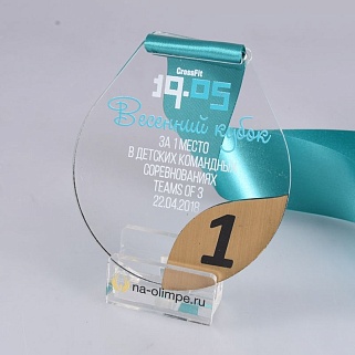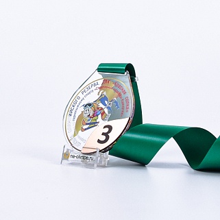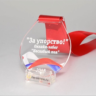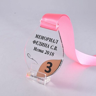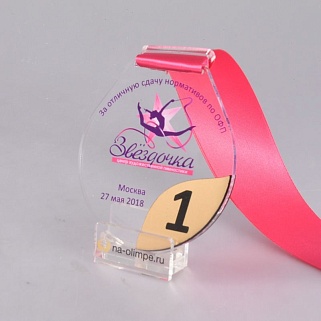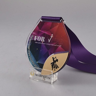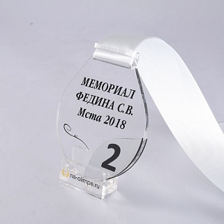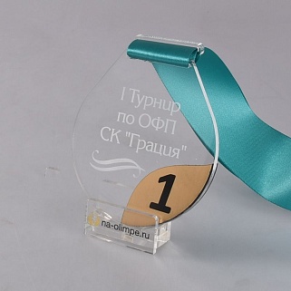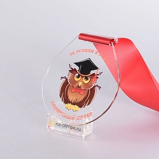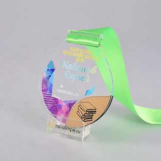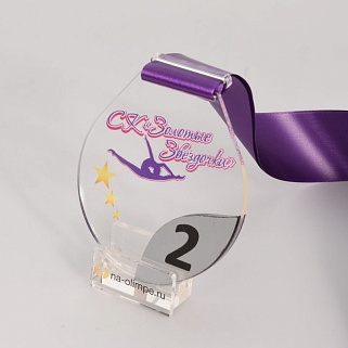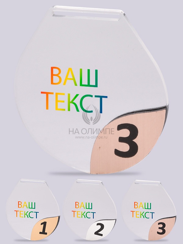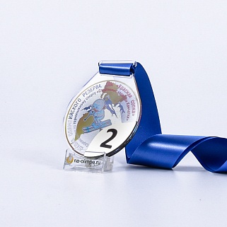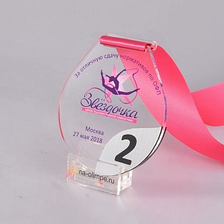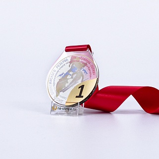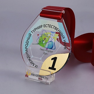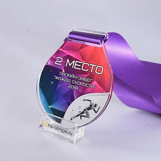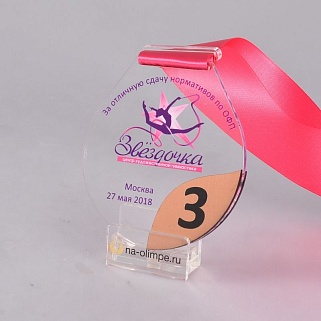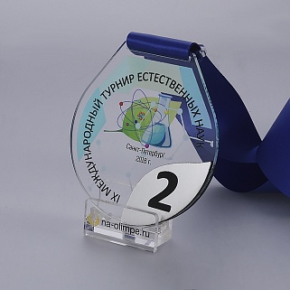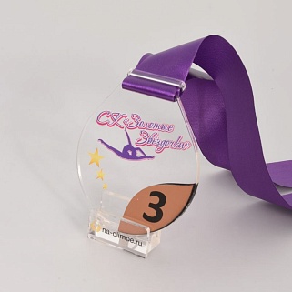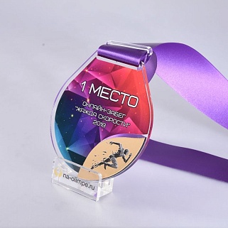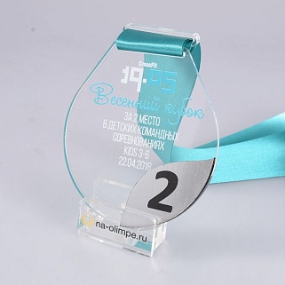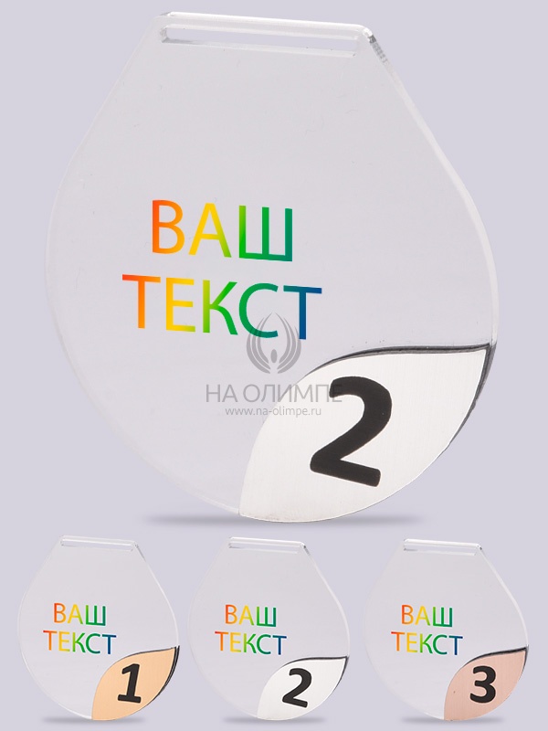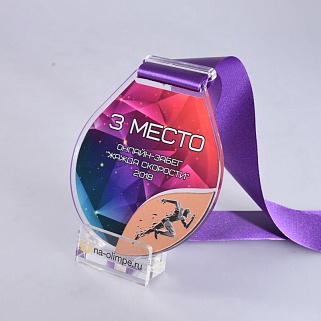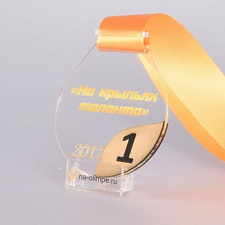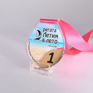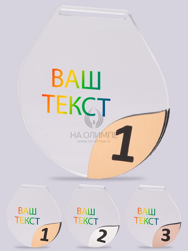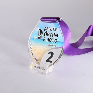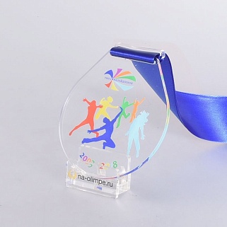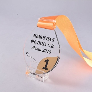 Медаль из акрила и пластика с полноцветной печатью. Нанесение текста и логотипа уже включены в стоимость.
