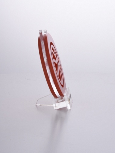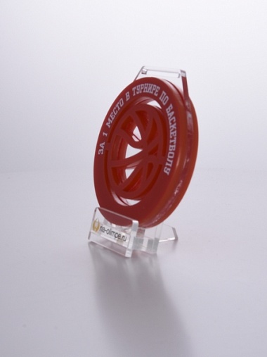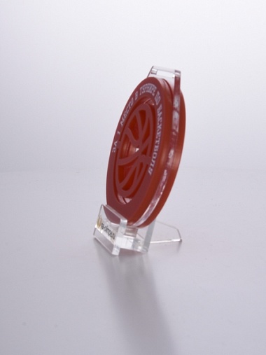 Трёхслойная медаль из прозрачного и цветного акрила с персональным нанесением любого цвета.