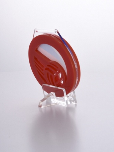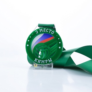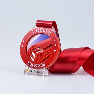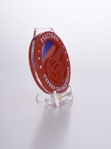 Трёхслойная медаль из прозрачного и цветного акрила с персональным нанесением любого цвета.