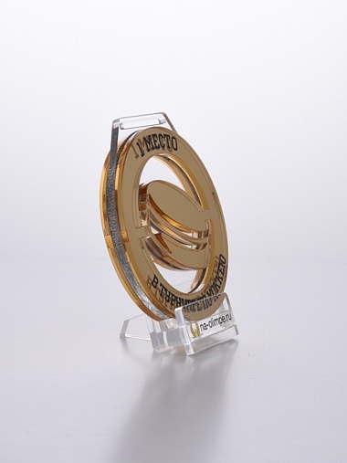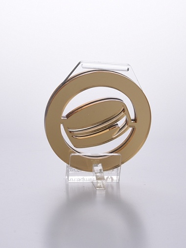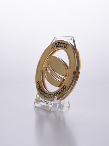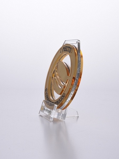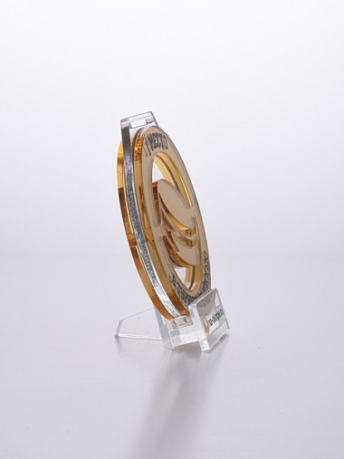 Трёхслойная медаль из акрила с полноцветным индивидуальным текстом по кругу.