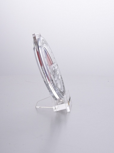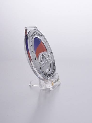 Трёхслойная медаль из прозрачного и золотого акрила.
