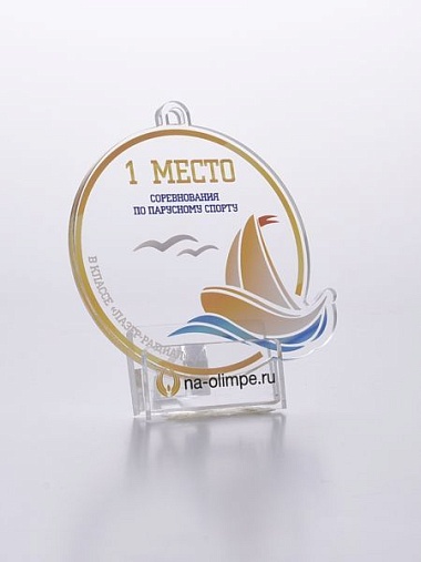 Медаль из акрила 54 Парусный спорт, цвет прозрачный
