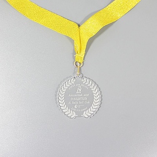 Медаль из акрила с гравировкой текста и/или логотипа по Вашему желанию.