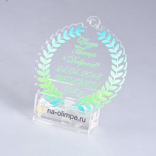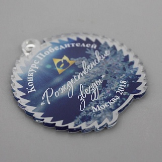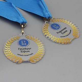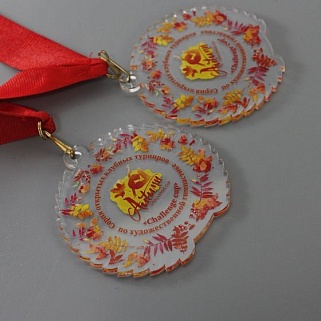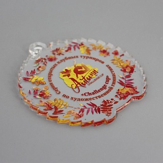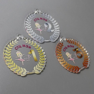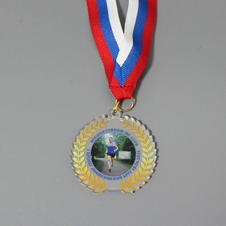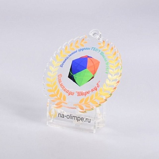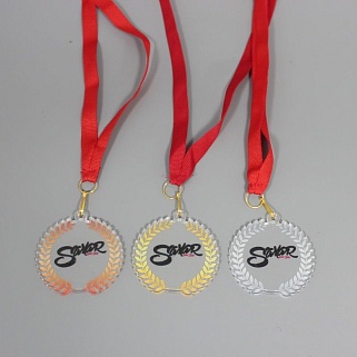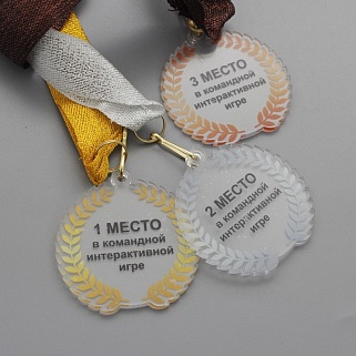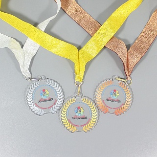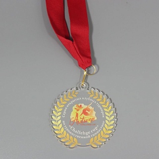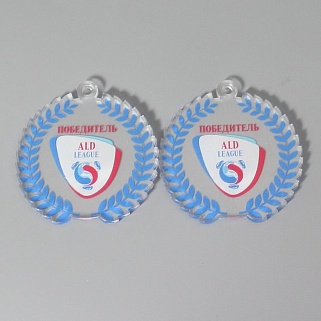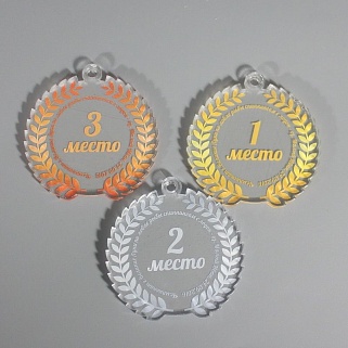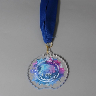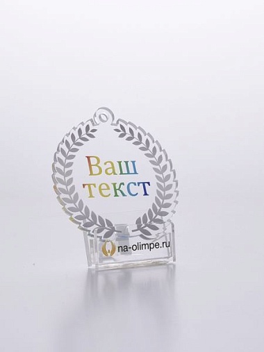 Медаль из акрила с цветным нанесением текста и/или логотипа по Вашему желанию.