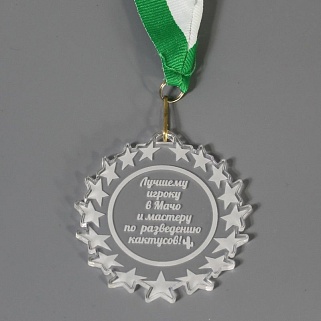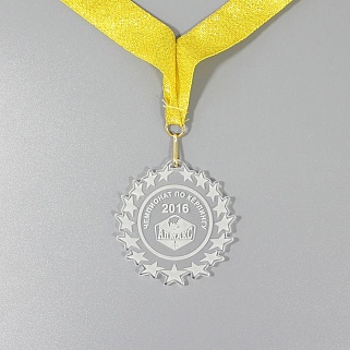 Медаль из акрила с гравировкой текста и/или логотипа по Вашему желанию.