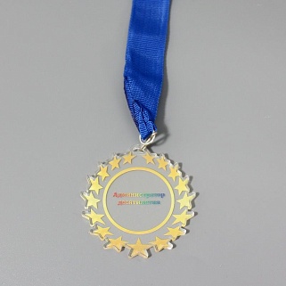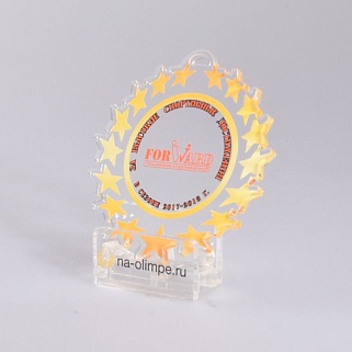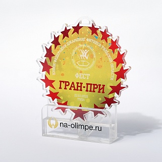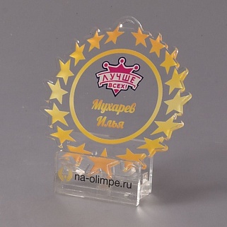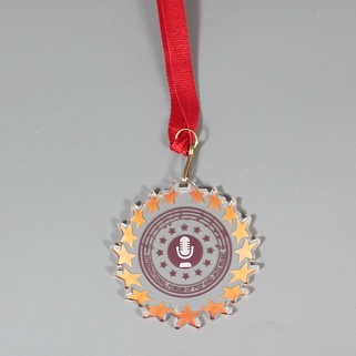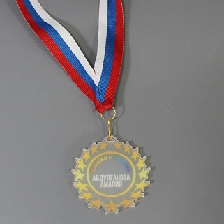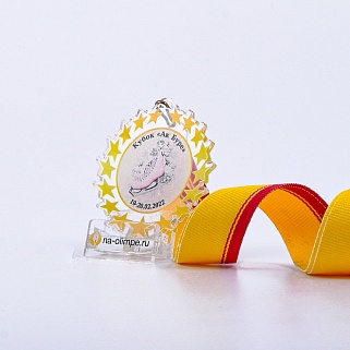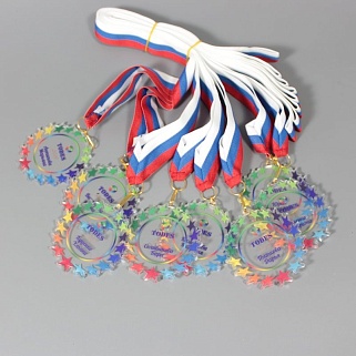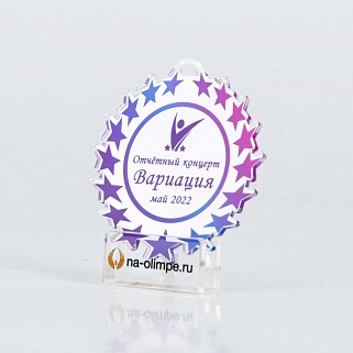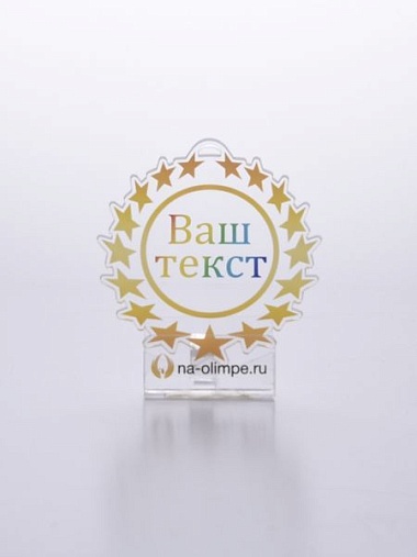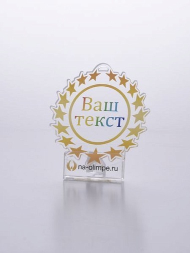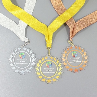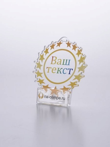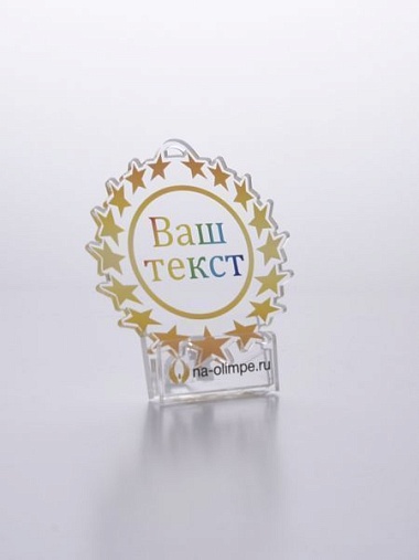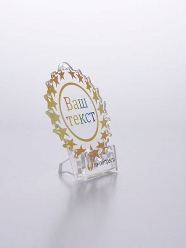 Медаль из акрила с цветным нанесением текста и/или логотипа по Вашему желанию.
