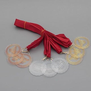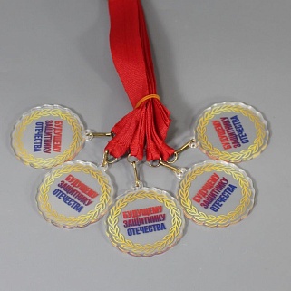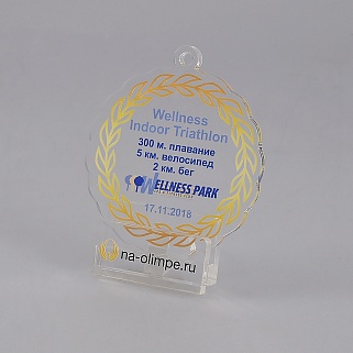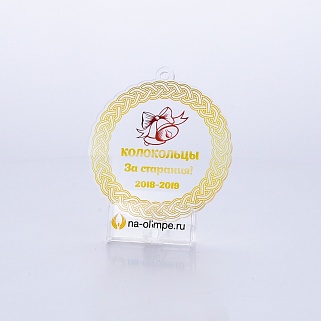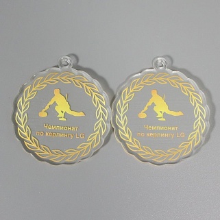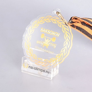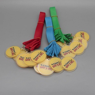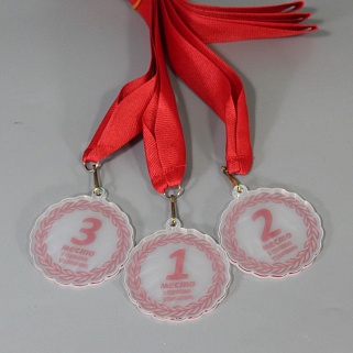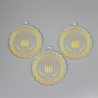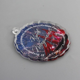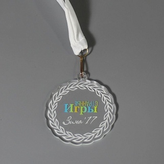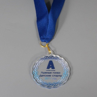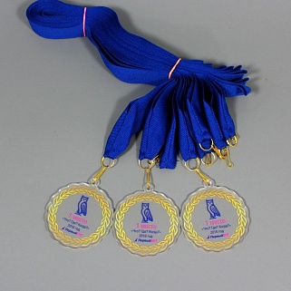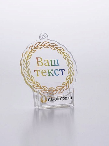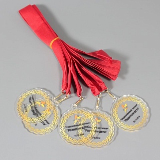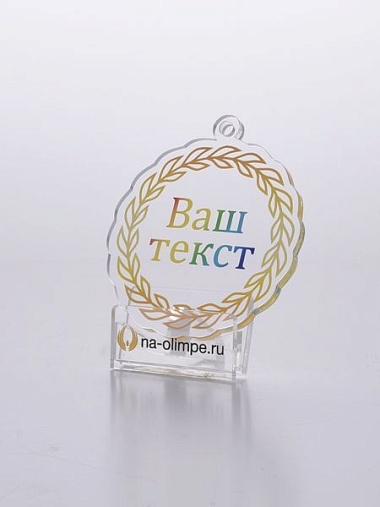 Медаль из акрила с цветным нанесением текста и/или логотипа по Вашему желанию.