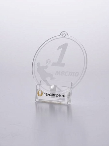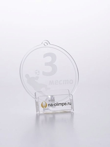 Медаль из акрила футбол 5-1М с гравировкой, цвет прозрачный