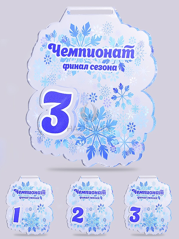 Медаль из акрила Зима 1М с цветным нанесением, цвет прозрачный