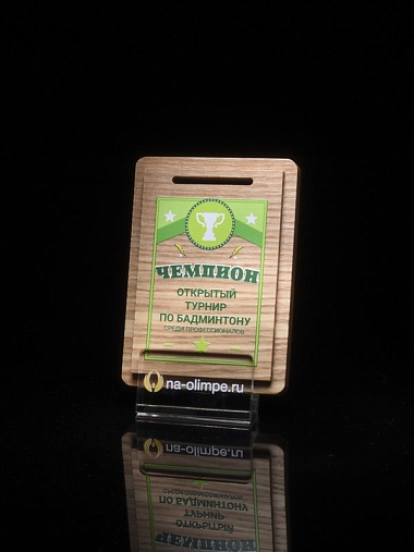 Деревянная медаль толщиной 10 мм с индивидуальным цветным нанесением.