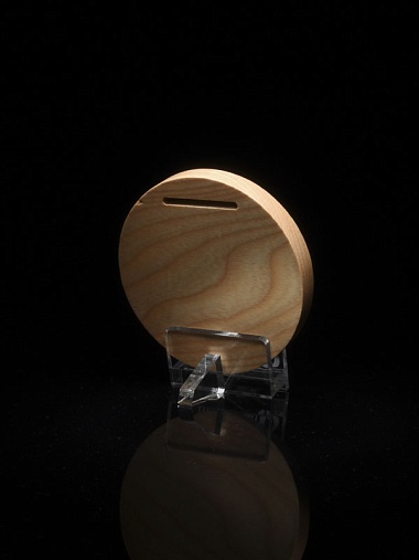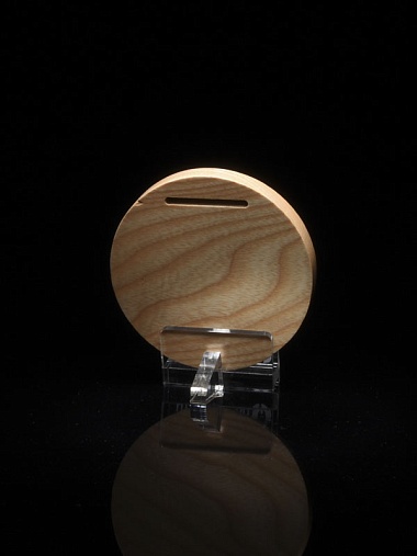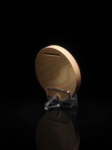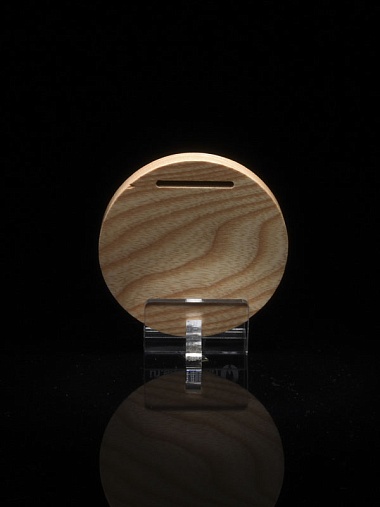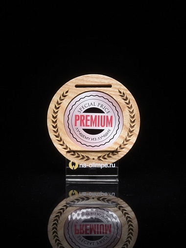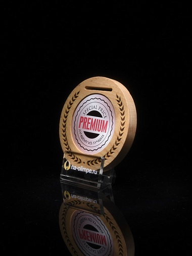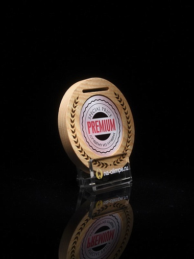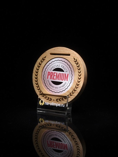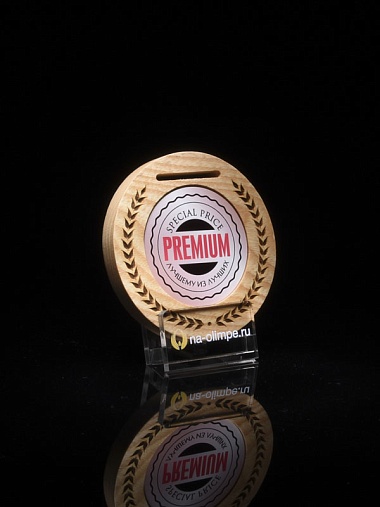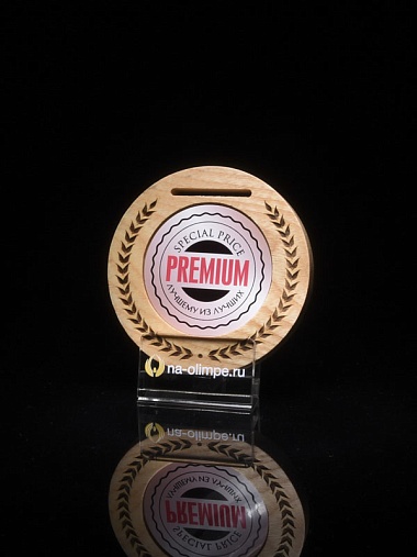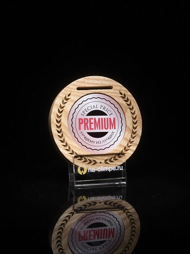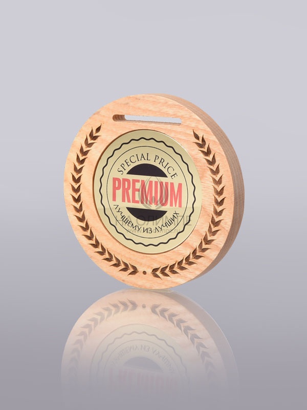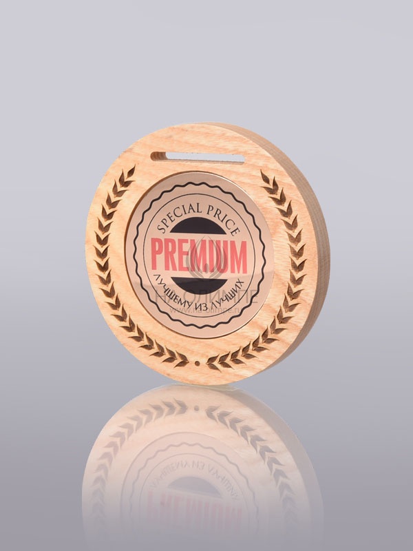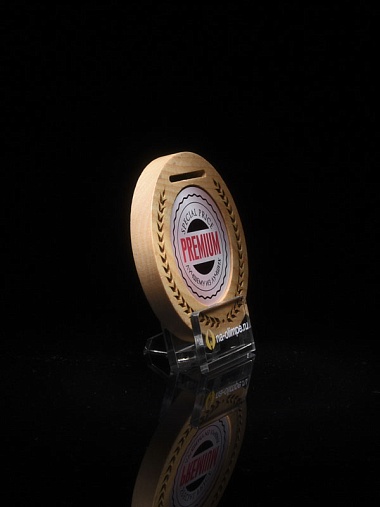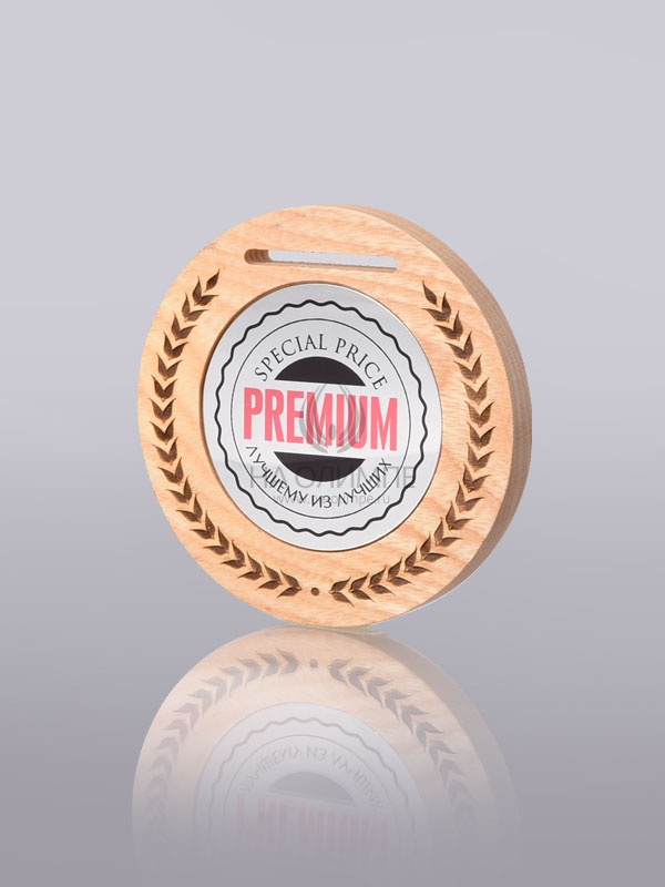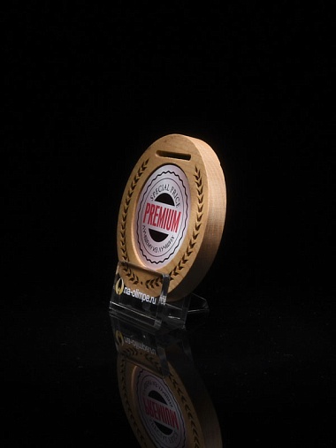 Деревянная медаль диаметром 80 мм гравировкой.