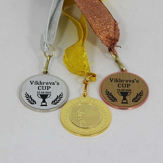Медаль металлическая диаметром 40мм.