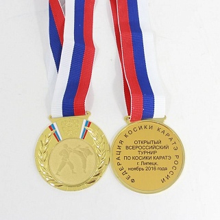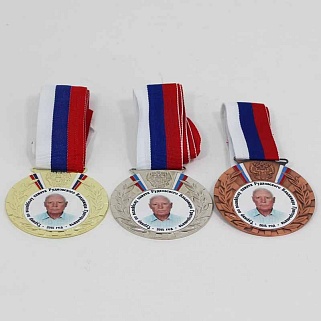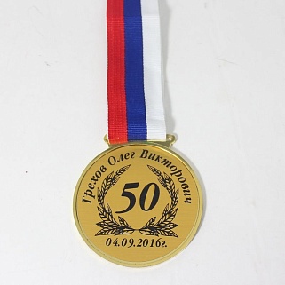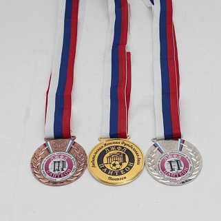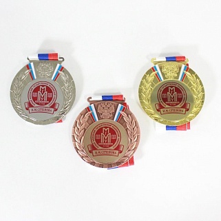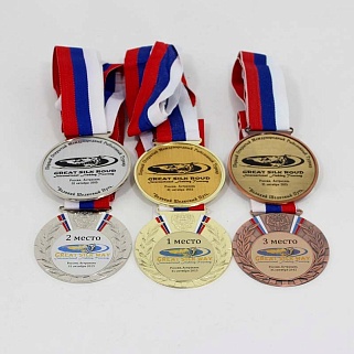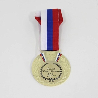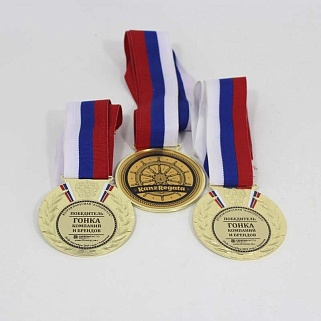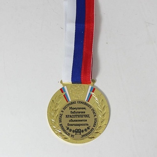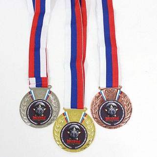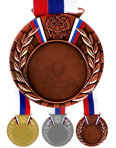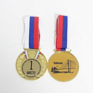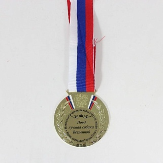 Медаль металлическая диаметром 80мм. В комплекте лента шириной 38мм.